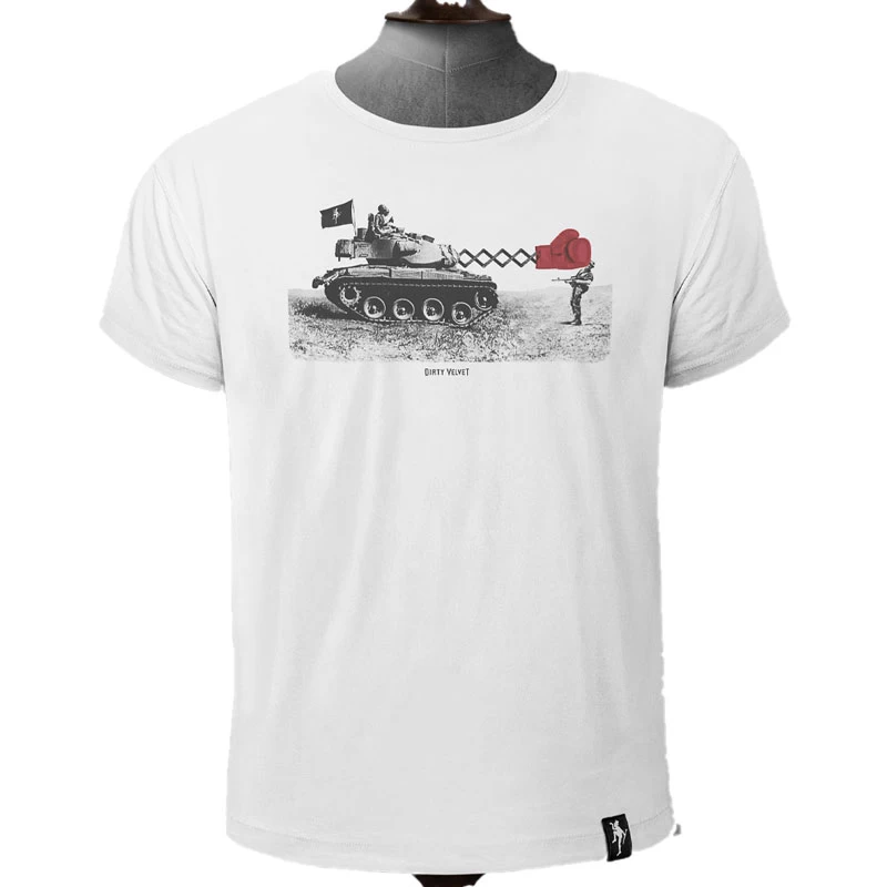 T-Shirt Homme Dirty Velvet Tank Attack Vintage White