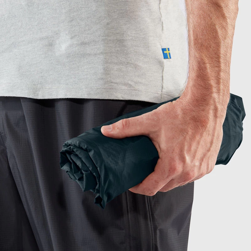 La construction signée Fjällräven en polyamide recyclé avec revêtement PU en fait une veste compacte et durable dans le temps.